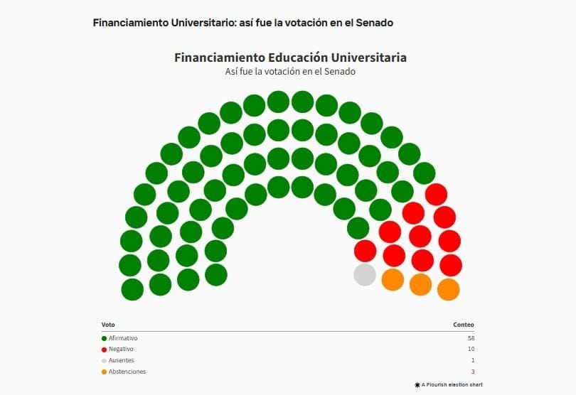 El Senado convirtió en ley el financiamiento para universidades públicas con 58 votos a favor, diez en contra y tres abstenciones, en una sesión que volvió a exponer la mayoría opositora frente al oficialismo. La iniciativa establece actualizaciones presupuestarias y salariales atadas a la inflación, con subas bimestrales para gastos de funcionamiento y recomposición de haberes para docentes y no docentes.
