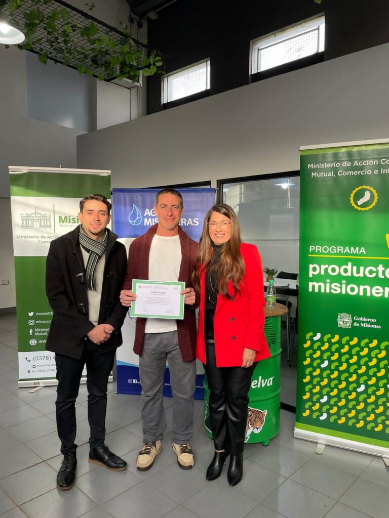 En una alianza público-privada, junto al Ministerio de Acción Cooperativa y a la Ministra Liliana Rodríguez, de la mano de la Distribuidora Gruposadas, la empresa Aguas Misioneras S.E. entregó los certificados de la capacitación que se realizó sobre la implementación de la ley III- N° 12. La misma crea el programa “Productos Misioneros” en toda la provincia.
